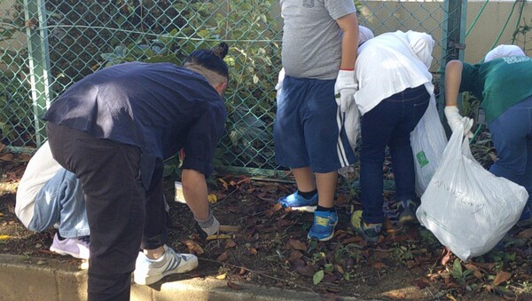 PTA環境部の皆様や保護者の皆様、後援会の皆様、地域の皆様と子どもたちとで敷地内の除草作業を行いました。おかげさまで伸びていた雑草がすっきりとしました。