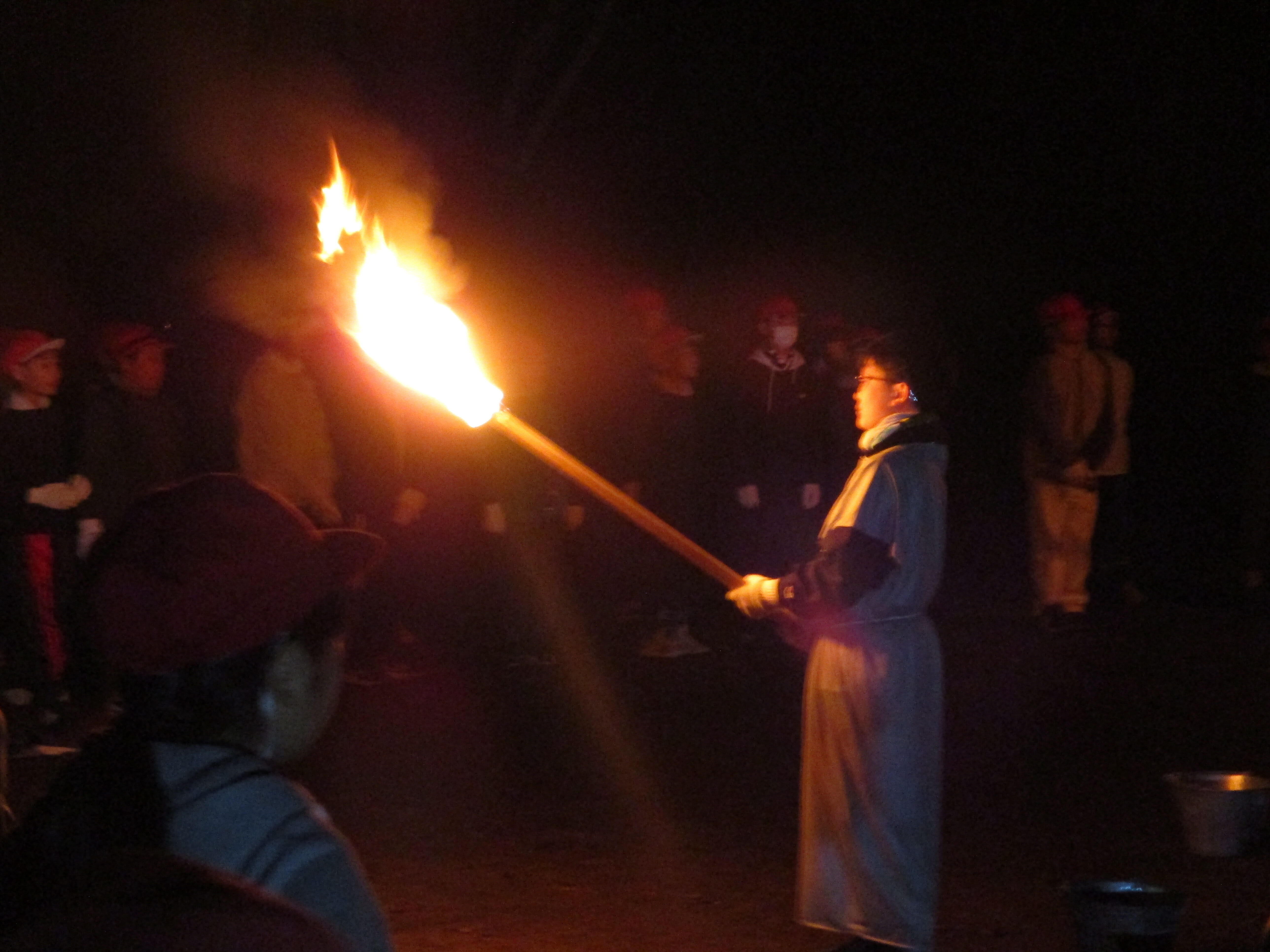 1日目の夜、キャンプファイヤーでは、暗闇の中、幻想的な炎に感動しました。