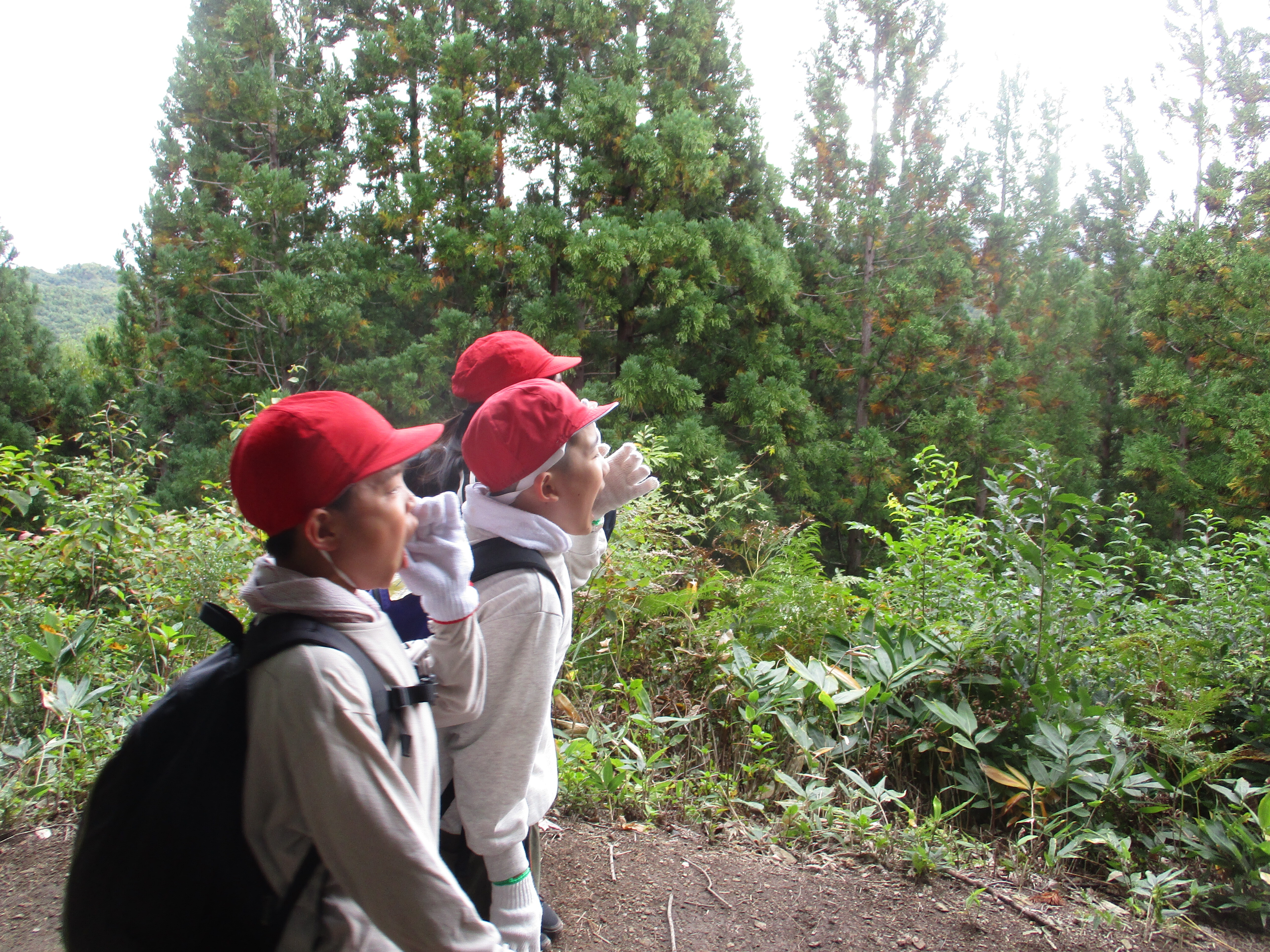 2日目、前山登山では「ヤッホーポイント」でやまびこを体験しました。