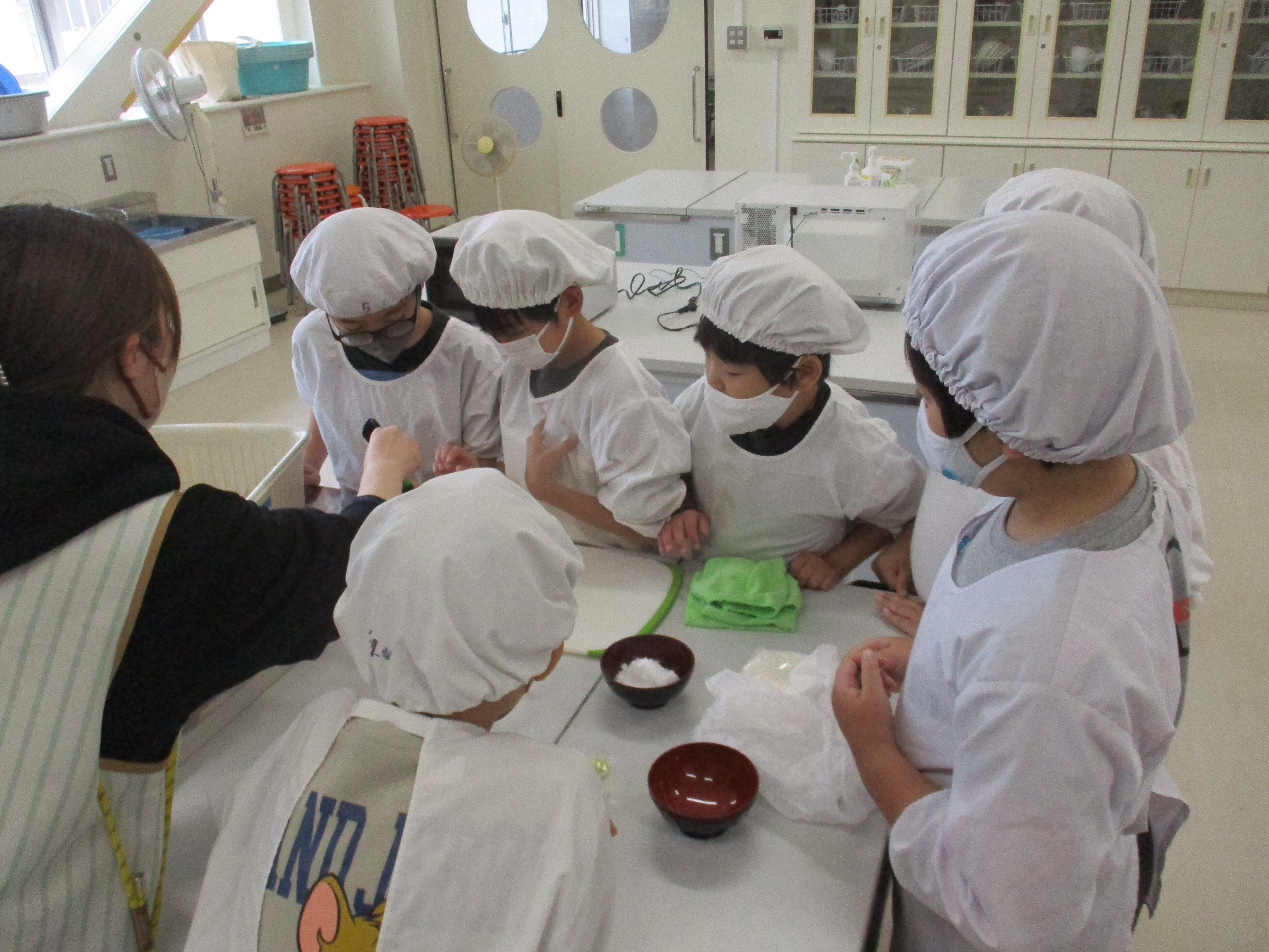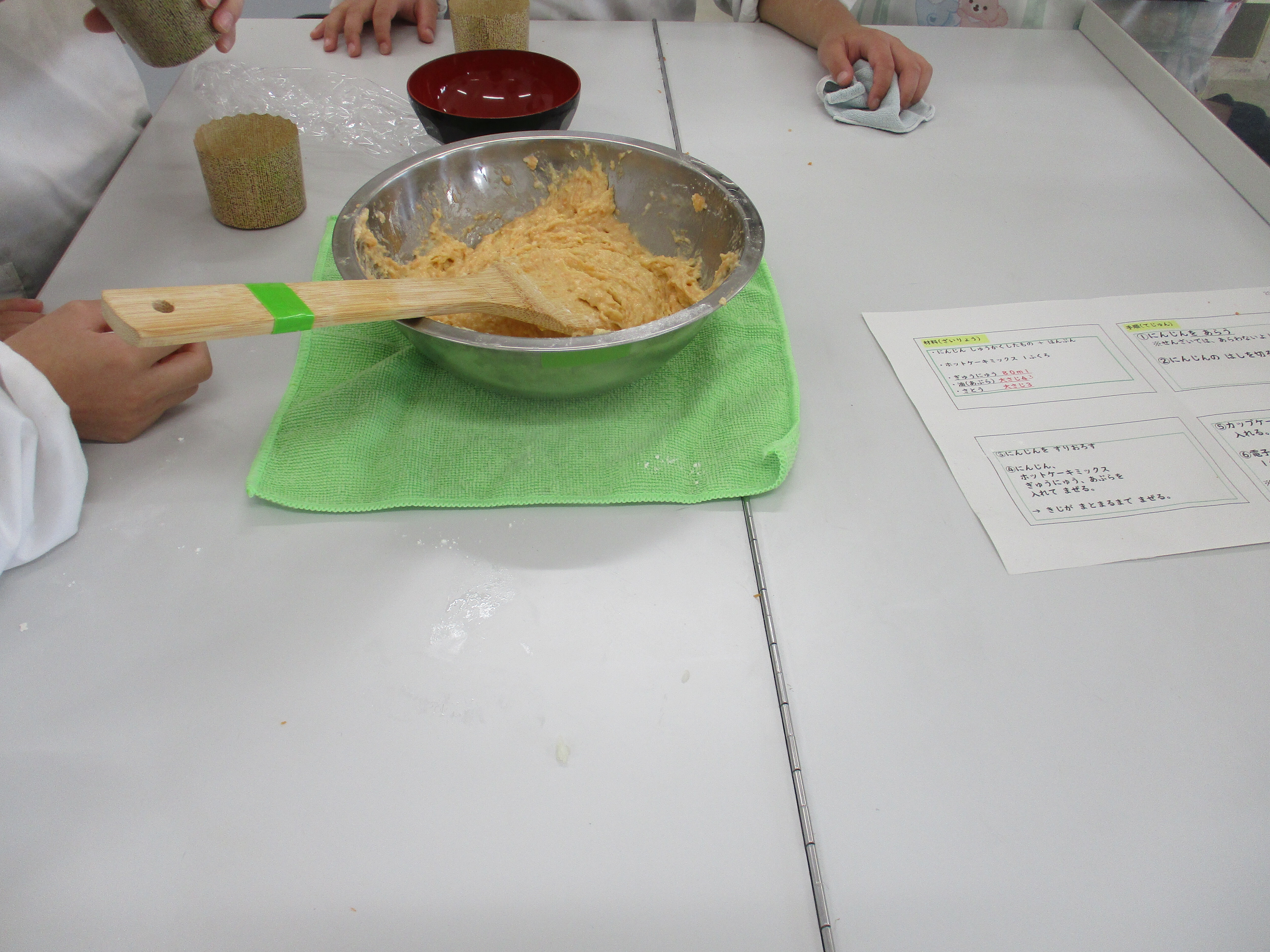 すりおろした人参を生地に混ぜ合わせました。班のメンバーで協力して作ることができました。